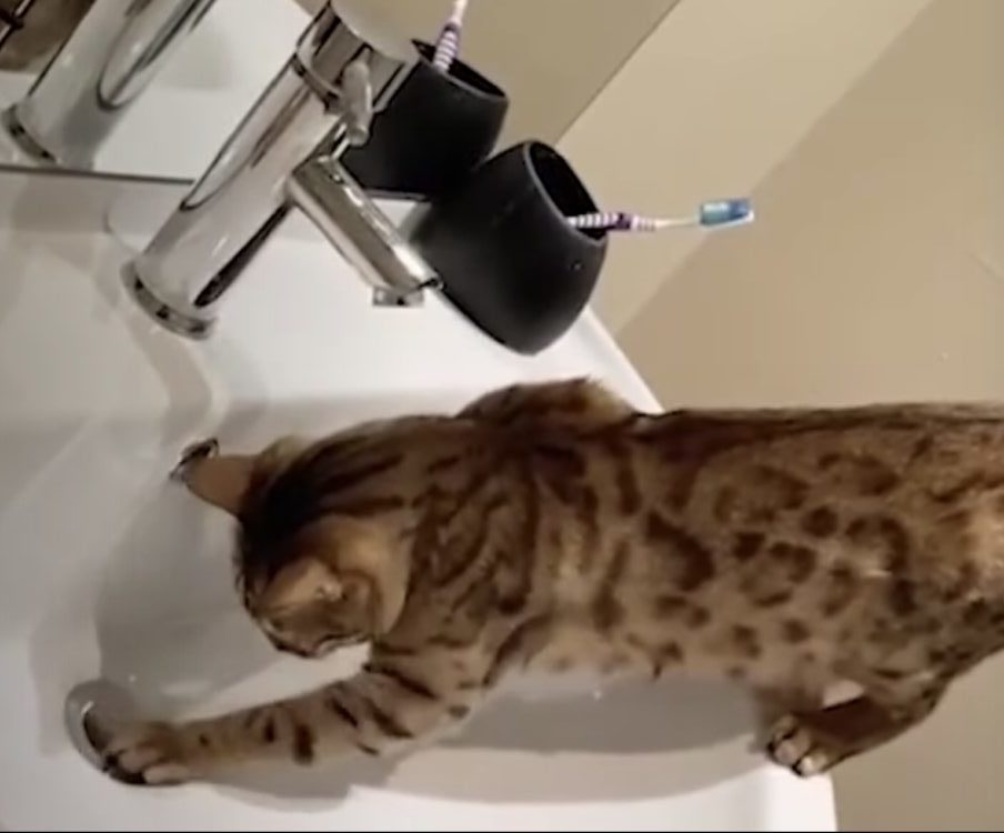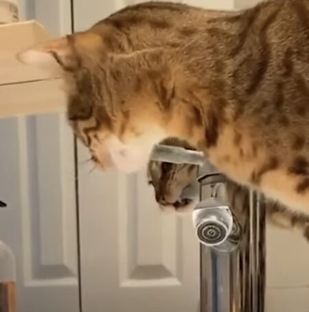 蛇口をひねれば水が出ることを覚えた猫さん。