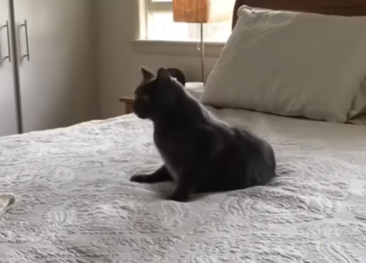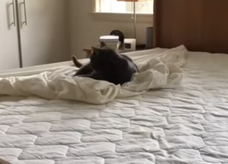 飼い主さんがシーツを変えようと、