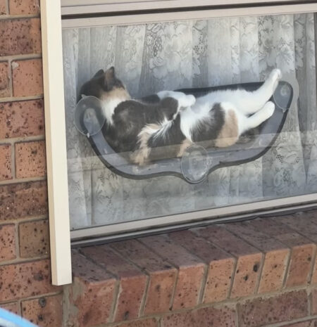 振り向いて「にゃんなのよ…」と迷惑そう。