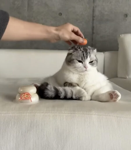 飼い主さんが鏡餅に乗っている橙(だいだい)を