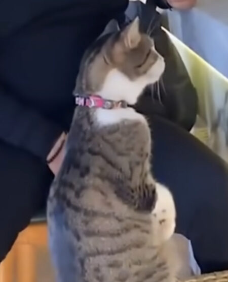 カウンター席でくつろぐ猫の姿に、店員さんもびっくり!