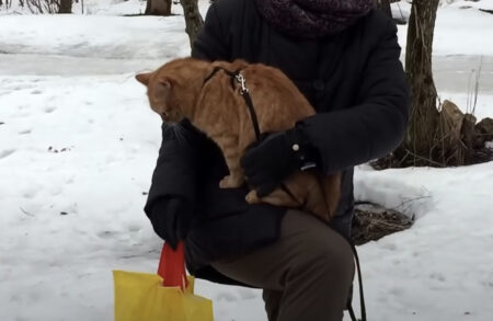 寒さでお鼻が真っ赤になっちゃった猫さん、
