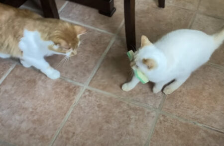 こちらの猫さんもちょっぴり変わったものに興味津々。