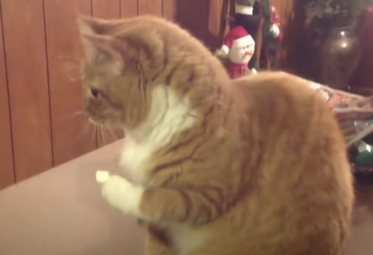 猫さんのお手手に小さなマシュマロが!