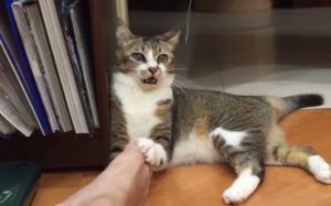 飼い主さんの足にじゃれ始めた猫さん