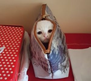 ポーチに隠れている子猫さん