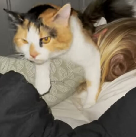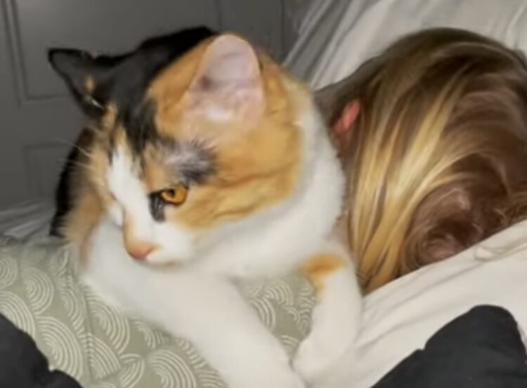 女の子が寝ぼけながら、猫さんをギューっとハグ!