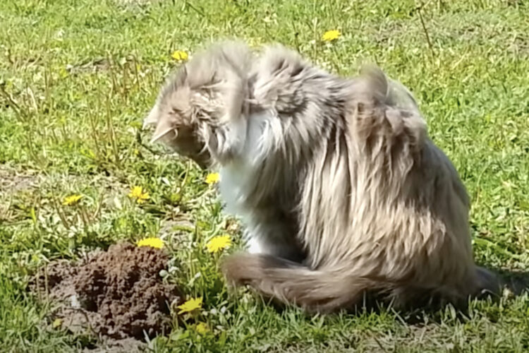土の山がもっこり…。これにゃんだ?と