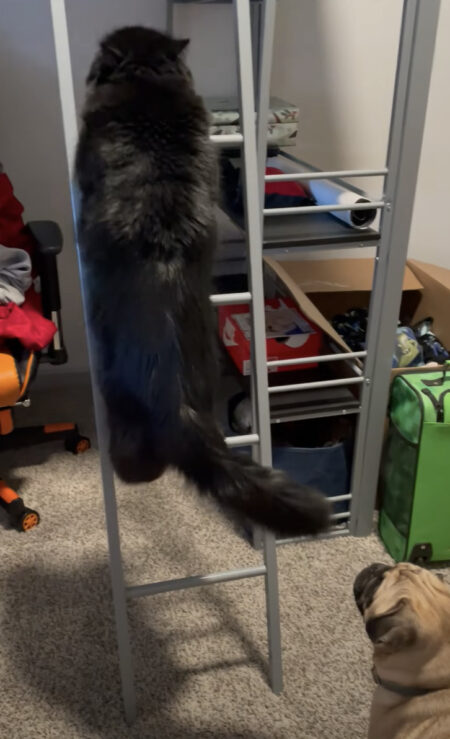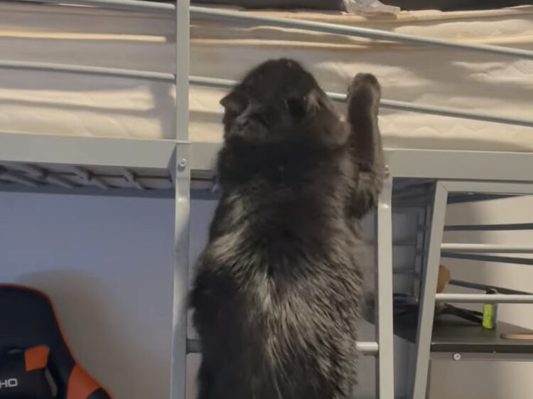大好きな人の匂いがする場所で寝たい猫、ロフトベッドも頑張って登る!