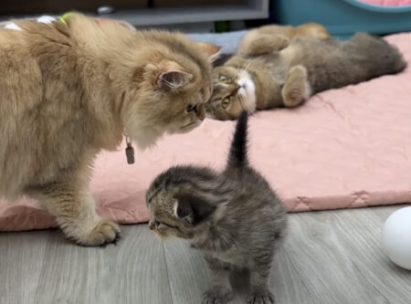 子猫のことを見守っている、