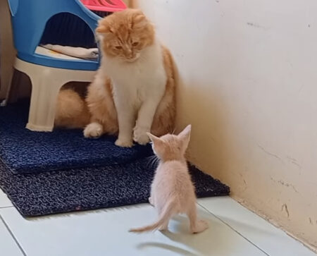 子猫さんは「にゃ〜!んにゃ〜!」と