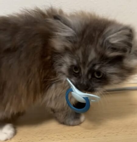 子猫さんの口には赤ちゃん用のおしゃぶり!
