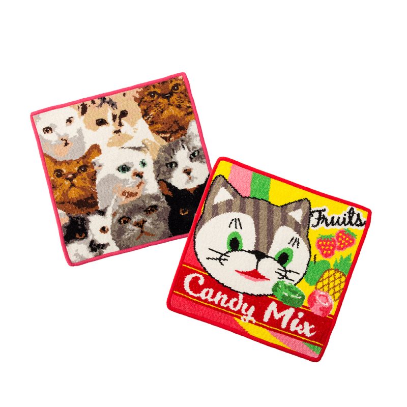 シェニール織のハンドタオルです。Cat’s ISSUEの人気ネコ集合柄とTOBY THE CAT柄の2デザイン。