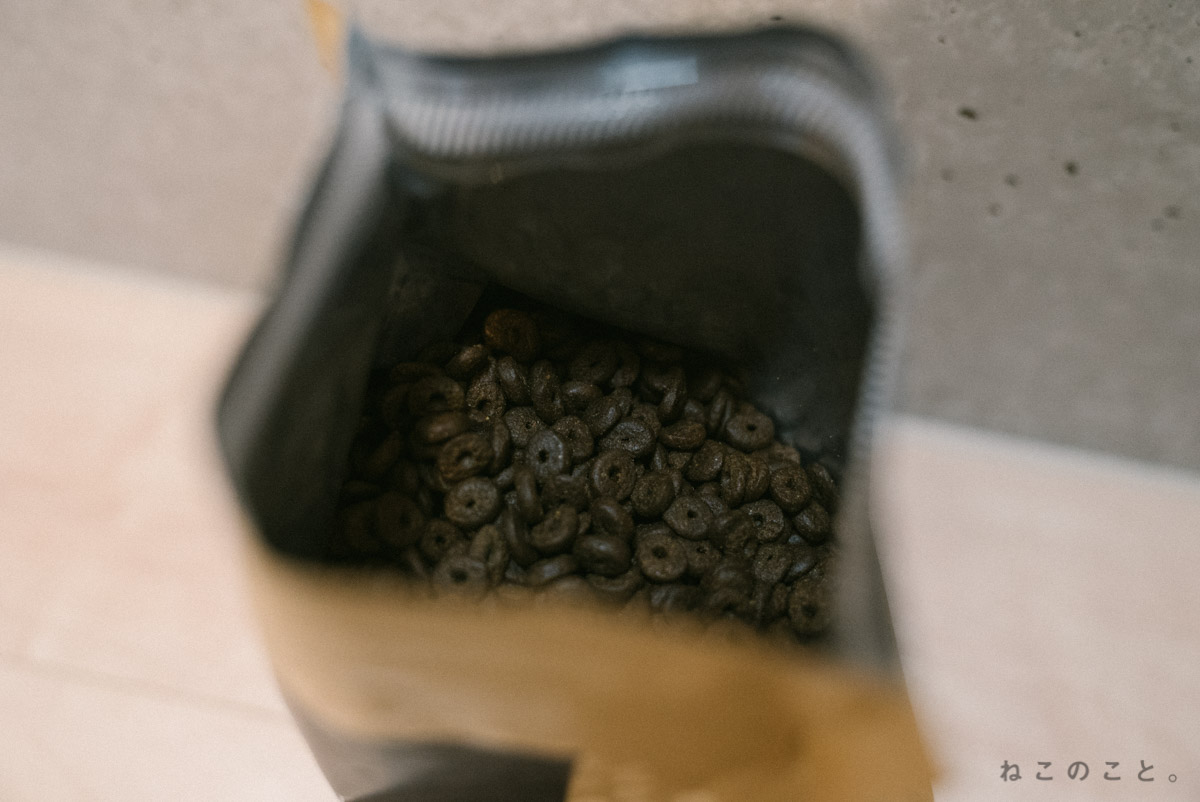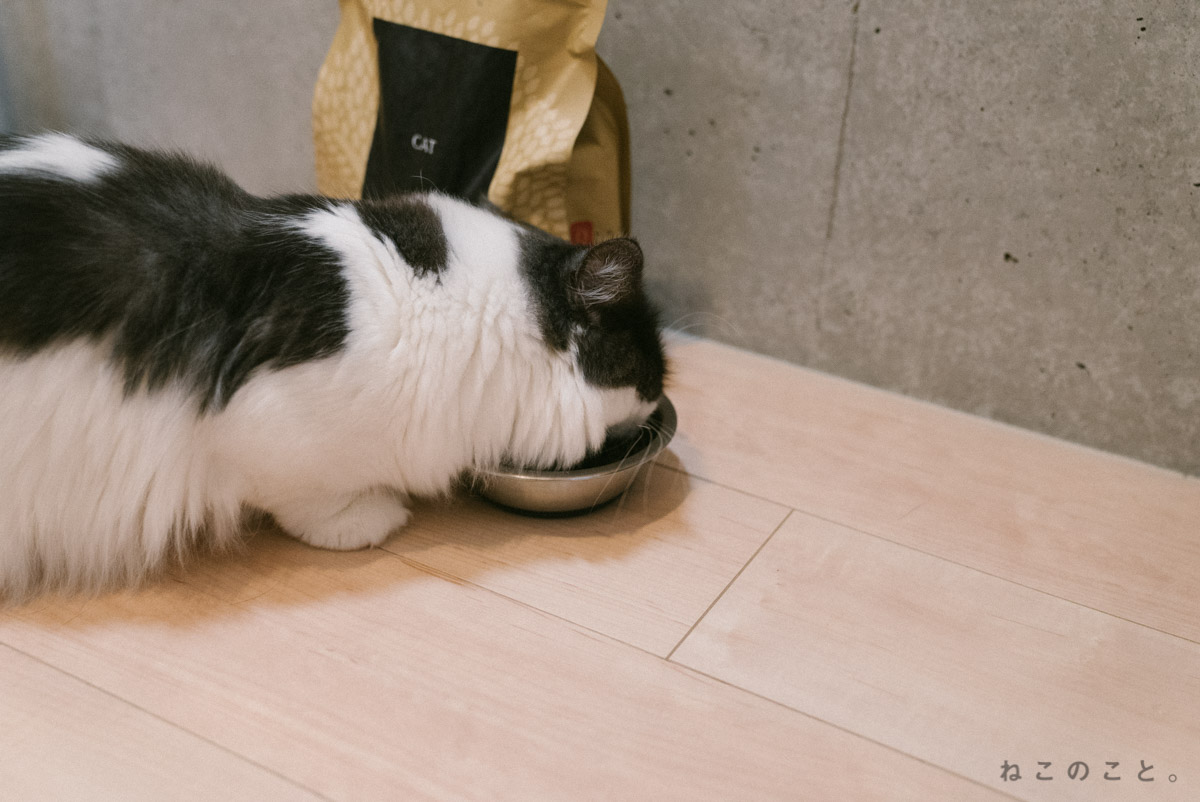 なかなかの食いっぷりです。はじめて食べるフードですが、チキンやサーモンの香り(人工香料不使用)に誘われてすんなり食べています。