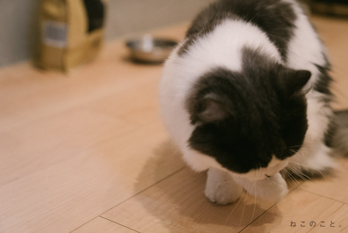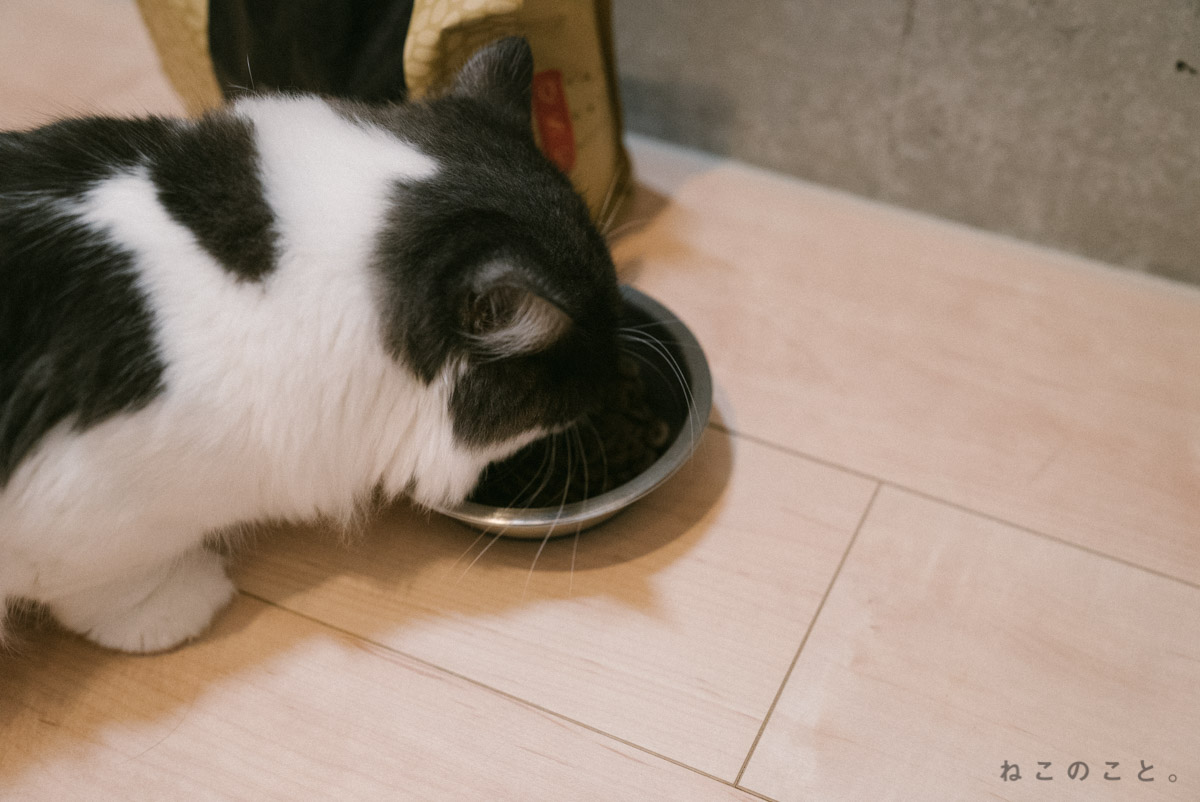あっという間に完食。そして伝家の宝刀「うまいうまい」!この仕草、嗜好性が高いおやつなどのフードを食べた後に見れるんですが、普通のドライフードでこれが見れるのは相当美味しかったという証ですね。さすがプレミアムフード。