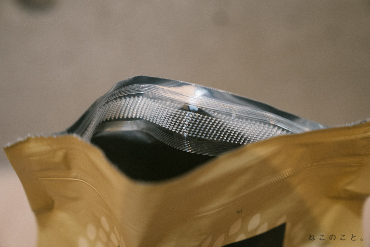 開け口は特殊なジップになっていて密封保存がしやすくなっています。これ便利だな〜。