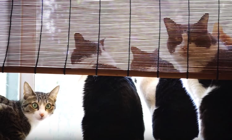 窓の外を眺めている猫さんたち