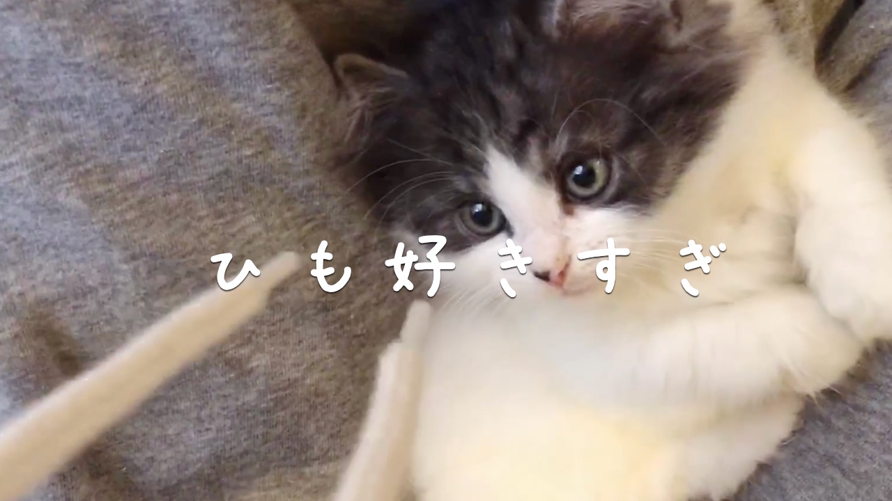 無邪気すぎるw ひもで遊ぶまくる子猫