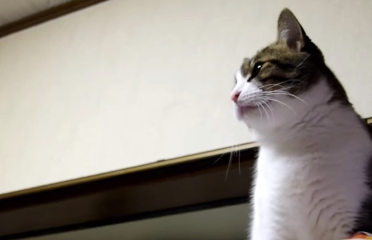 ガサガサと、棚の上のお菓子を物色する猫さん。