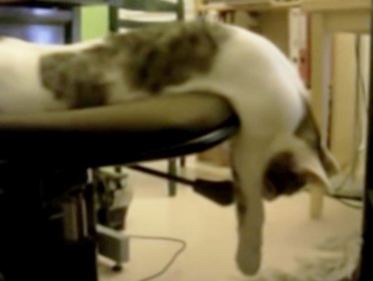 イスの上でだらーんとなって、伸びきっている猫さん。