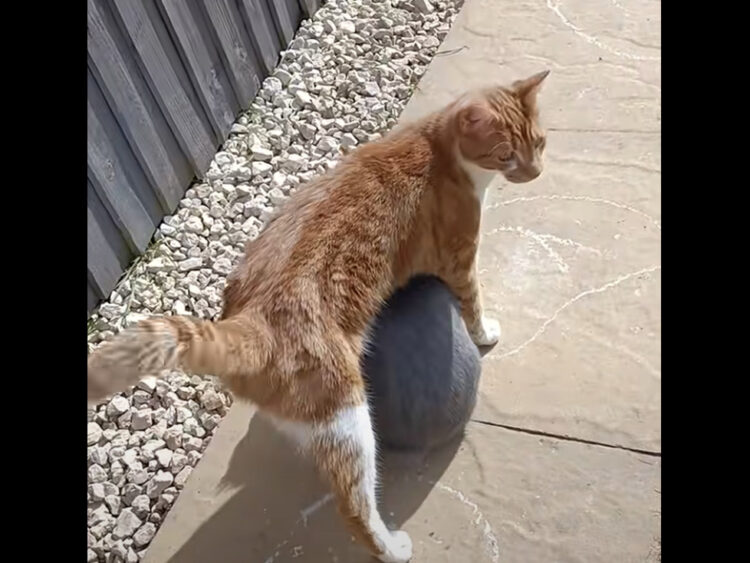ポカポカお天気が気持ち良さそうな日。 猫さんが飼い主さんに付き添ってもらいながら 外を楽しくお散歩をしています。 るんるんと楽しそうに歩いて... と思ってみていたのですが なんだか猫さんはとっても歩きづらそう。 足元に何か灰色の影がいますね。 ...