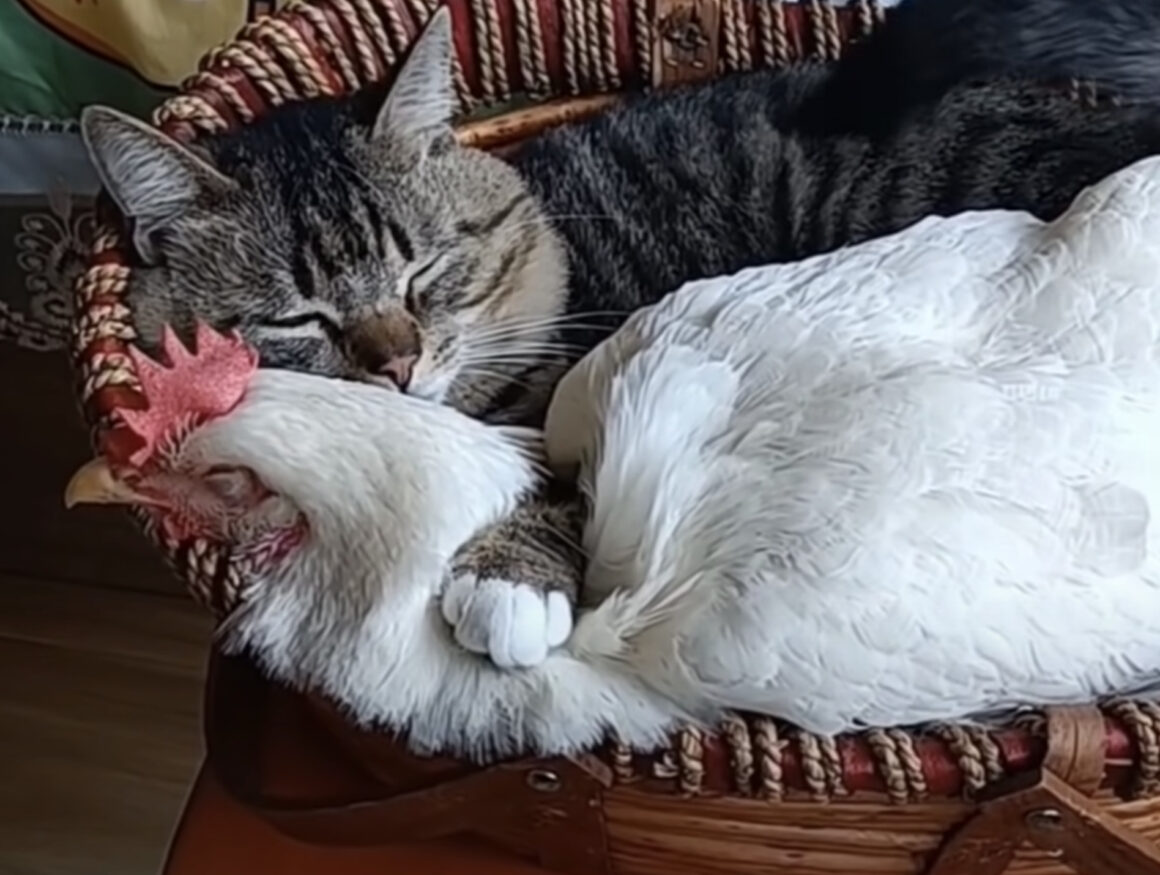 仲良しすぎてびっくり…! 猫と鶏の友情にほっこり♪