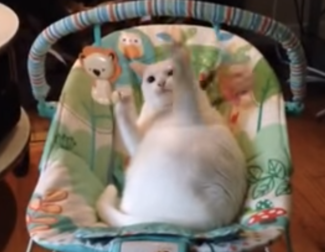 赤ちゃんが別のところに行っている隙に、 ベビーベッドの寝心地をチェックしている猫さん。 ほどよく揺れるし、ちょっと手を伸ばせばオモチャがあるし、 ここって結構快適かも? 気に入っちゃって、毛づくろいしながら 遊んでいる猫さん。 もうずーっとこ... -