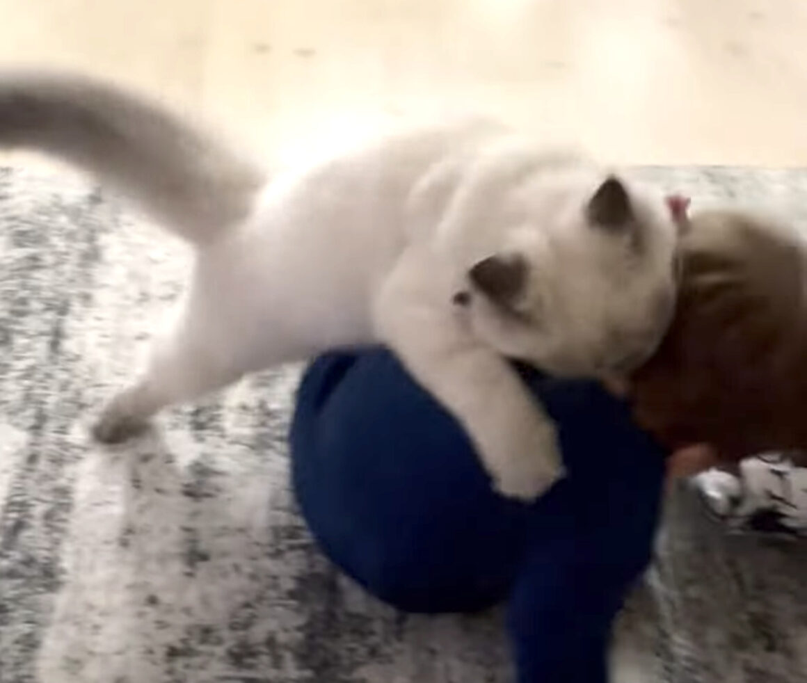 子ども相手に本気で遊ぶ猫。 まるで兄弟のような仲の良さ♪