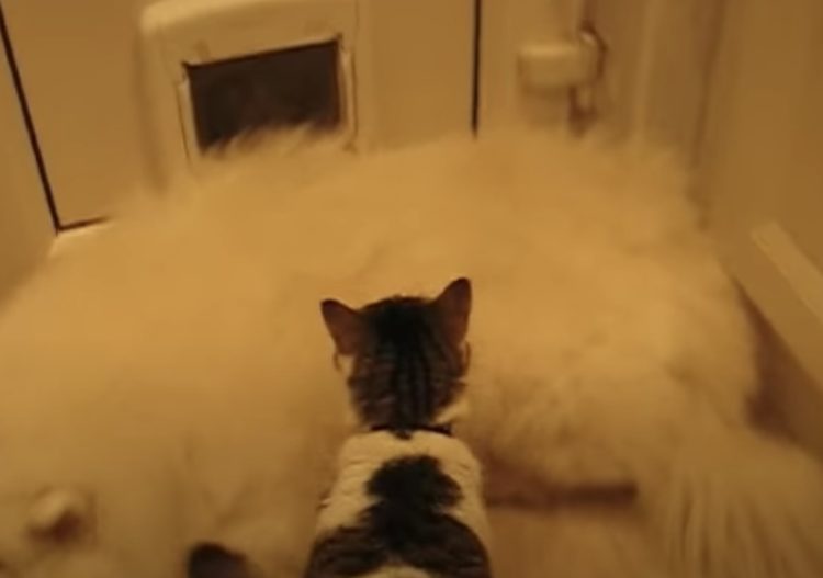 猫「…どいてくれませんか?」大型犬がドアを塞いじゃった!