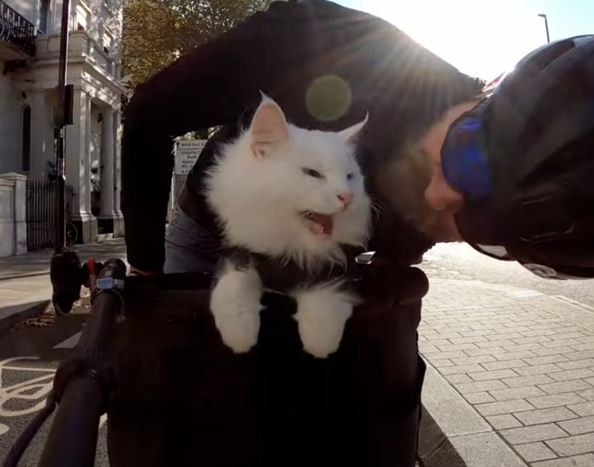自転車でロンドンを旅する猫、飼い主と一緒で楽しいね♪