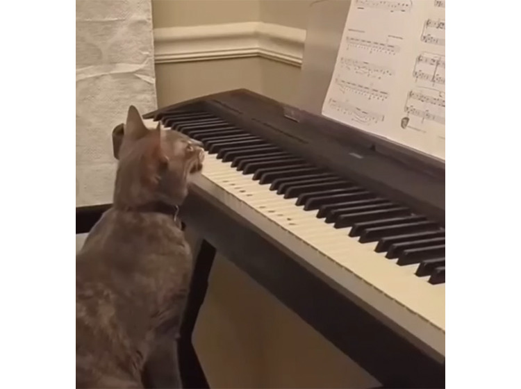 ピアノの前で楽譜を見ながら 「んん〜、にゃ!」 猫さんが泣き声の練習をしている!? 視線はちゃんと楽譜を見ていて にゃにゃにゃにゃにゃん♪と、 お歌を唄っているみたい! この猫さんの姿、 まるでボイストレーニングの最中だ。 飼い主さんにおやつをお願... -