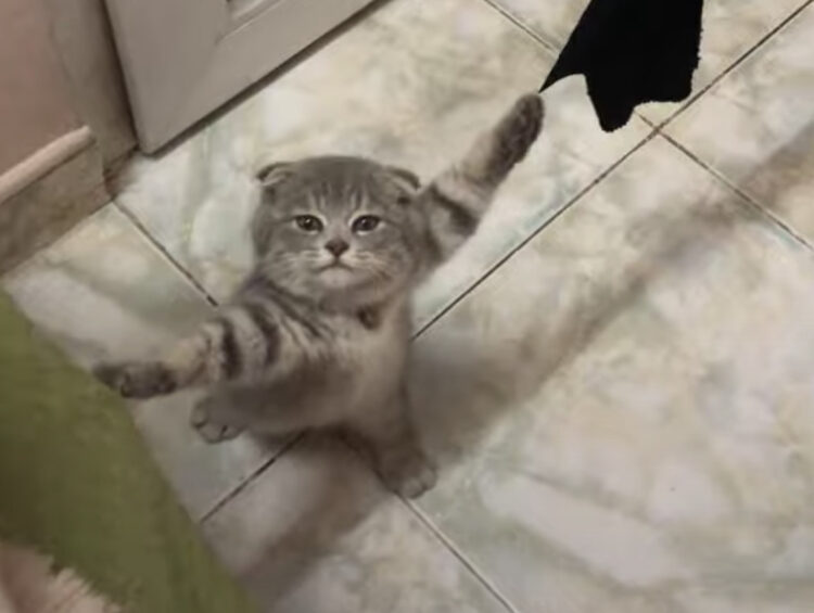 お部屋から、子猫がミャーと 鳴いている声が聞こえたので 飼い主さんがお部屋にいくと 立ち上がった姿で、 両手が動かなくて困ってる子猫が。 片手はカーテン、 もう片手はソファに捕まってしまった猫さん...。 一体何をしたら、 そんな事になっちゃうの?... -
