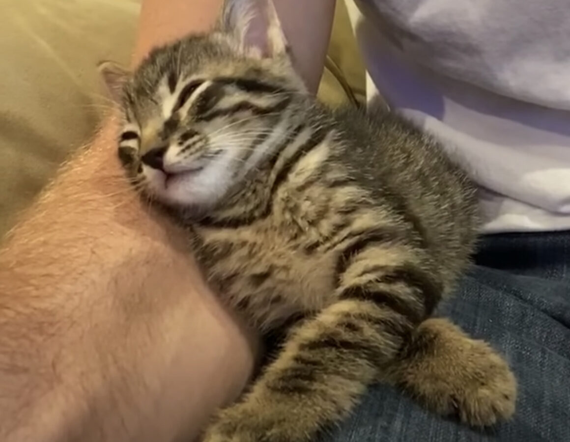 眠くても… 飼い主さんにちゃんとお返事する子猫。