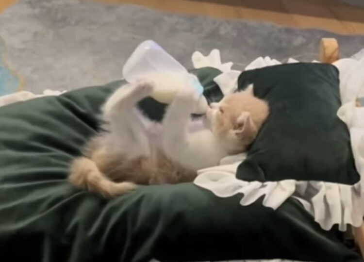 腹ペコの子猫、ミルクの飲みっぷりが最高に可愛い♪
