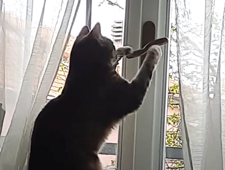 猫「ここが…こうじゃろ?」 難しい窓開けに挑戦!