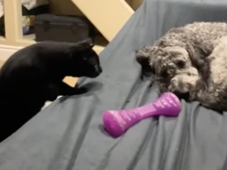 猫…ステルスモード、オン!犬にこっそり近づいて…?