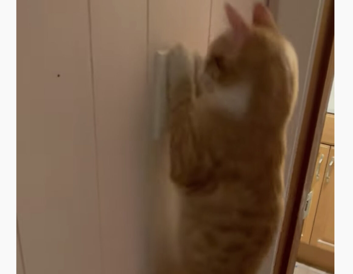 天才だ!頭と体を使ってタンクを開けちゃう猫。