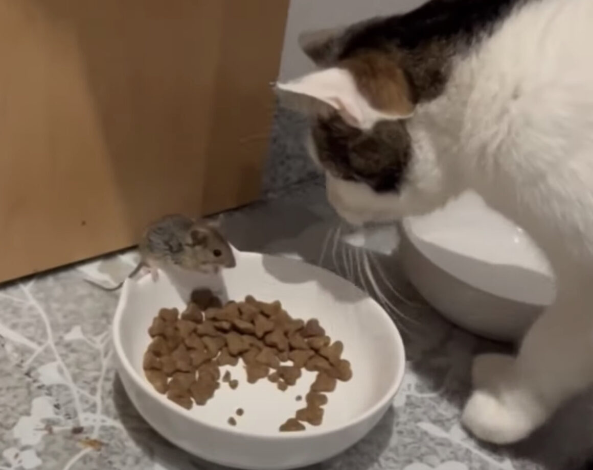 お皿の上に…ネズミ!? ご飯が食べられない猫の反応は…