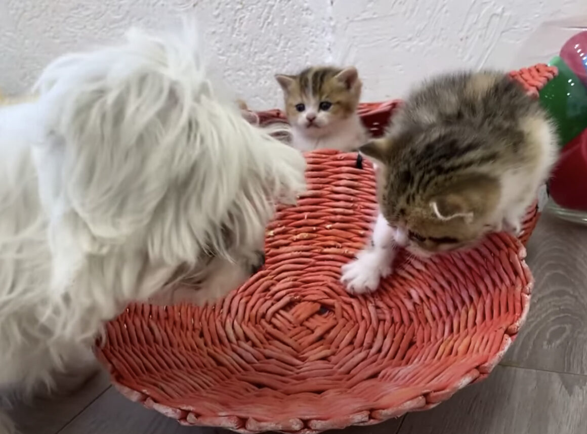 知らないモフモフ… 子猫と友達になりたい犬と、遠慮したい子猫。
