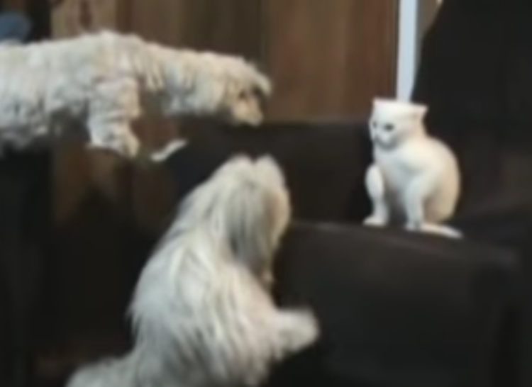 ソファに座っている白猫の、子猫さん。 同居しているたくさんの犬さんもいて いつもは穏やかに暮らしていますが、 この日はなぜか、ちょっと落ち着かない様子で 猫さんの方に絡んでくる犬たち。 一緒に遊ぶつもりなのか、 尻尾をフリフリしながら猫さんの...