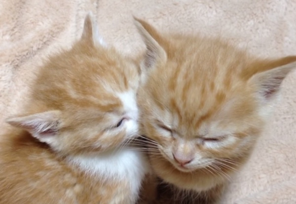 まだ幼い2匹の子猫。 眠たい盛りの子猫だもの、左の子猫(しっぽちゃん)は右の子猫(あんよちゃん)の肩を借りて爆睡中。 右のあんよちゃん、自分も眠たいんだけど、しっぽちゃんのためにがんばって起きていますが… 耐えるか、耐えるのか…? 子猫の寝姿っ...