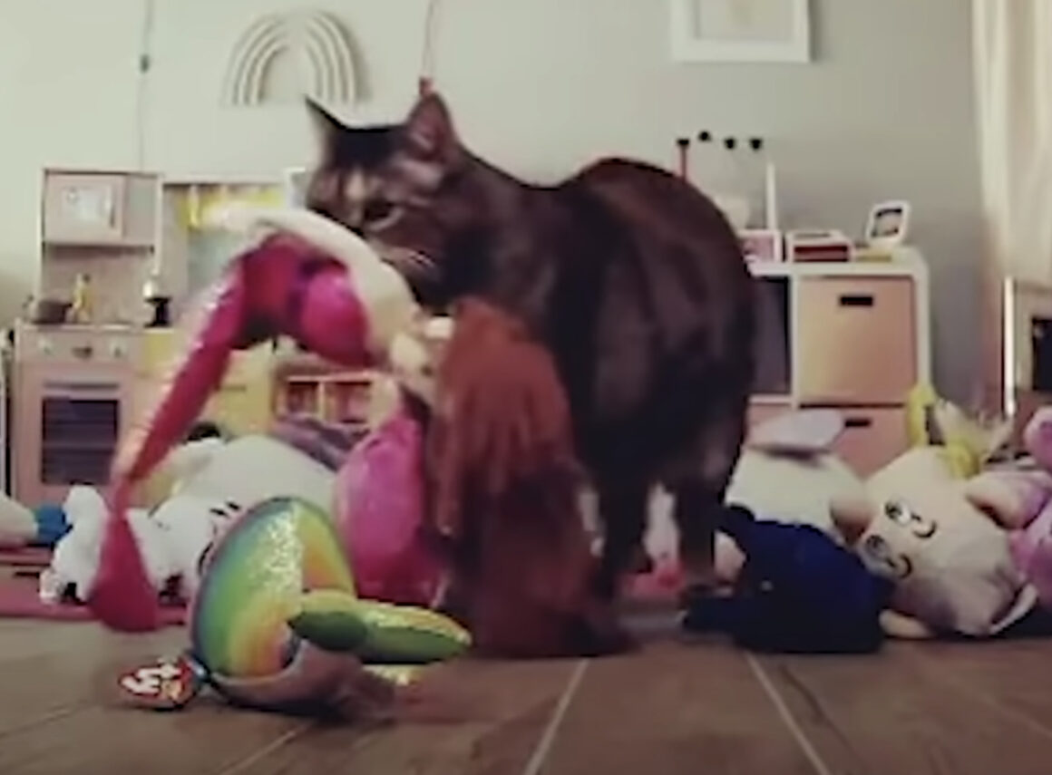 ややぽっちゃりめの 仰向けで寝ている猫さん、 見た目で侮ることなかれ! 毛づくろいをしている最中に 飼い主さんが不意打ちで ぬいぐるみを投げてみると すぐに反応して 上手に両手でキャッチ! スローモーションでみると しっかりぬいぐるみを狙ってるの...