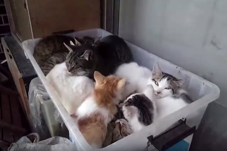 だんだん寒くなって来て、外猫さんは厳しい季節。 置いてあったプラケースにミチミチッとみんなで詰まって おしくらまんじゅう状態! あったかそうです。 撮影に気づいてか、ひとりふたりと抜けていってしまい… 寒くなっちゃうよ〜と顔をあげる猫さんなの... -