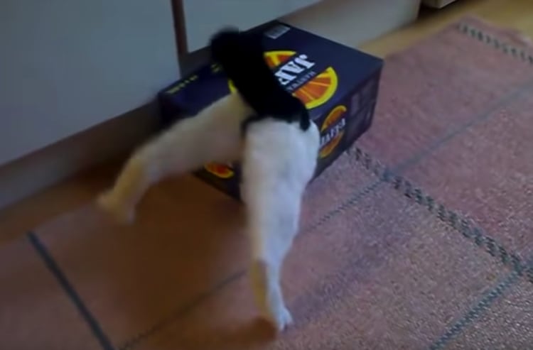 ぬ、ぬ、抜けない〜!箱にハマってバタ足する猫。