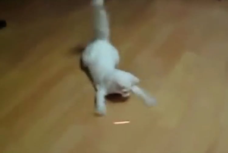 激しすぎて動きが変!レーザーポインタで遊ぶ猫。