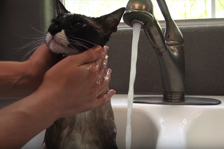 あったか〜い。美しくシャワーを浴びる大人な猫。