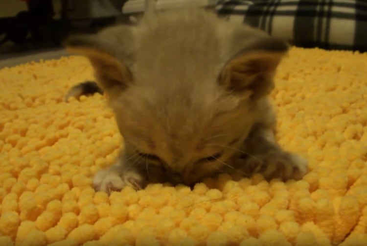 フミチュパが止まらない!ラグに夢中になる子猫。