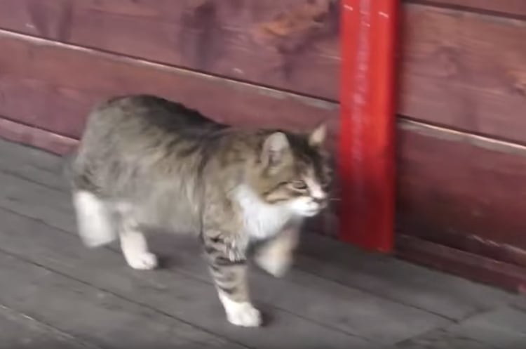 てってけて〜♪コミカルな歩き方で通り過ぎる猫。