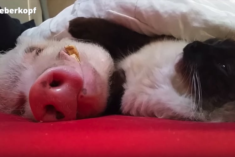 小さい頃からいっしょに暮らしているという とっても仲良しな豚さんと猫さん。 自分も眠そうなのに、いいこいいこ〜となでなで 寝かしつけてあげる猫さん。優しい…! ほっこり眠くなる映像なのでした。 [youtube https://www.youtube.com/watch?v=FXsW8iuz...