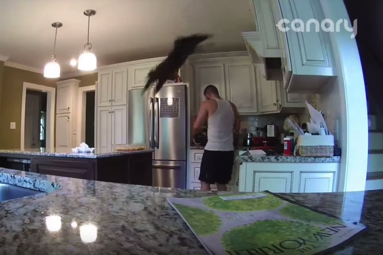 ご飯準備中に大ジャンプ!猫が着地したところは…